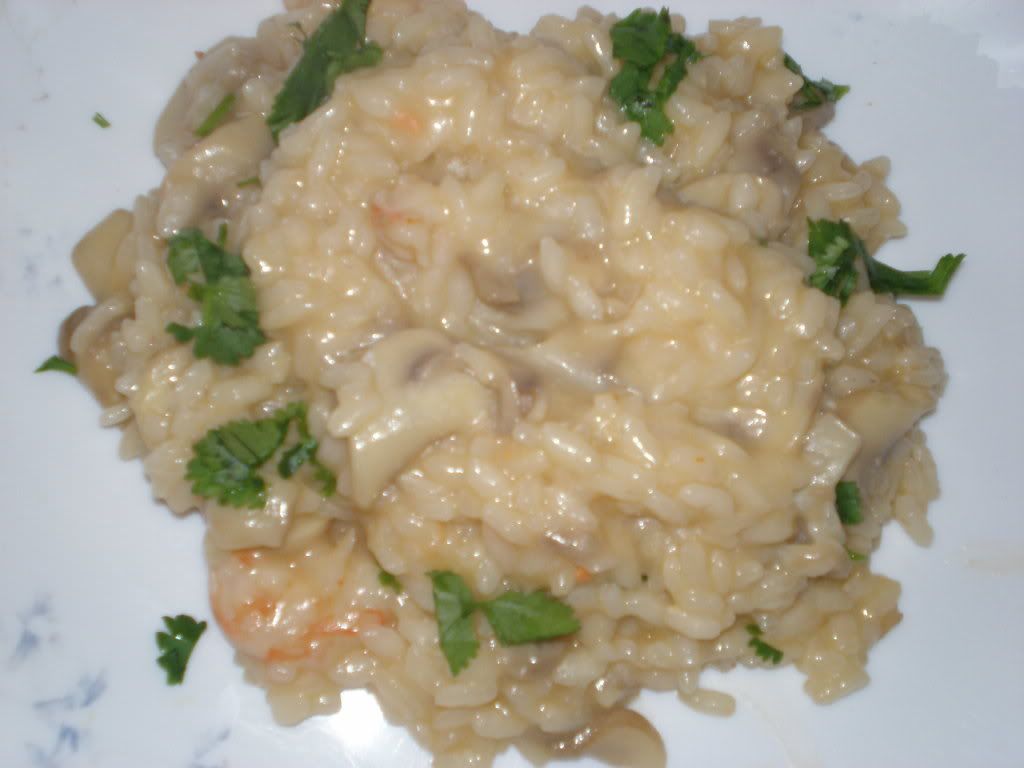 Risoto de cogumelos e camarão