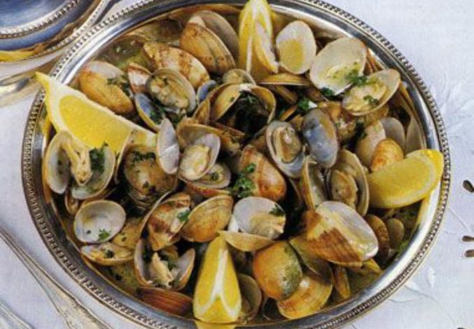 Arranjam-se as amêijoas como habitualmente, pondo-as de molho em água com bastante sal e lavam-se em várias águas para largarem a areia. Leva-se ao lume o azeite, deixa-se aquecer e juntam-se os dentes de alho picados. Deixa-se alourar um pouco. Introduzem-se as amêijoas e os coentros finamente picados e tempera-se com sal e pimenta. Mexe-se o recipiente de vez em quando. Quando todas as amêijoas estiverem abertas, regam-se com o sumo de meio limão. Serve-se com o restante limão cortado em quartos.