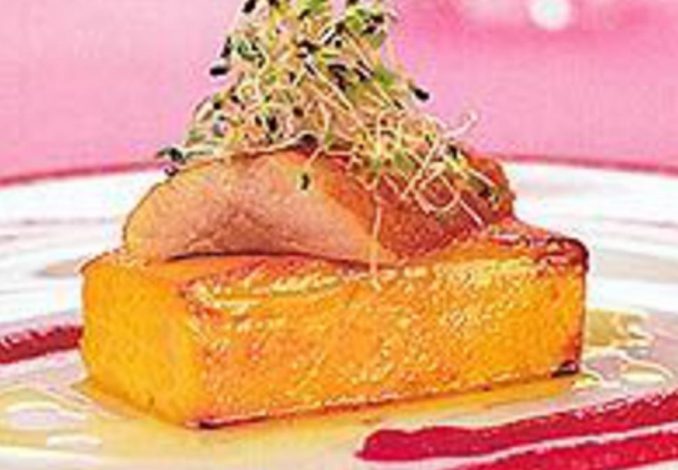 Bata no processador a beterraba com o suco de limão até obter um purê. Coloque os pedaços de abóbora nos pratos, disponha os filés de arenque e sirva em seguida com o purê de beterraba. Para dar um toque fresco ao prato, acompanhe com broto de alfafa e regue com azeite de oliva.
