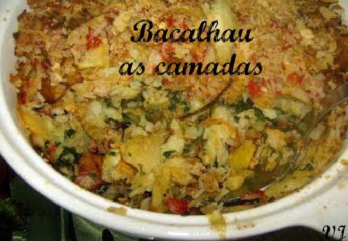 - Corte as batatas aos cubos e frite-as. - Coza o bacalhau(usei daquele já desfiado) e deixe arrefecer. - Num tacho coloque o azeite e o alho finamente cortados. Deixe alourar até a cebola estar translúcida. - Junte a esta mistura de cebola o espinafres e deixe cozinhar por 5 minutos. Acrescente as delicias do mar finamente cortada e deixe tomar gosto mais uns 3 minutos. - Entretanto torre o pão. - Numa travessa coloque uma camada de batatas, outra da mistura dos espinafres, bacalhau, novamente batatas, a mistura de espinafres e bacalhau e termine com batata. - Desfaça o pão que torrou e coloque por cima das batatas. Regue com um fio de azeite. - Leve ao forno cerca de 20 minutos, até o pão alourar.