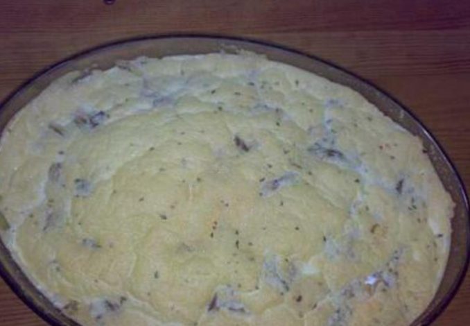 Descasque as batatas,lave-as e cozas em água temperada com sal. Coza o bacalhau noutro tacho com água,escorra-o,limpe-o de peles e espinhas e desfie-o. Coza também os ovos,depois de cozidos corte em rodelas. Leve um tachinho ao lume com a margarina e o azeite;junte os alhos picados e deixe-os cozinhar até começarem alourar. Bata as claras em castelo com uma pitada de sal. Num pirex,deite as batatas cortadas ás rodelas,por cima deite o bacalhau desfiado,de seguida regue com molho do alho e depois ovos às rodelas,por fim as claras em castelo e espalhe muito bem. Leve ao forno a 180ºc durante 10 minutos.