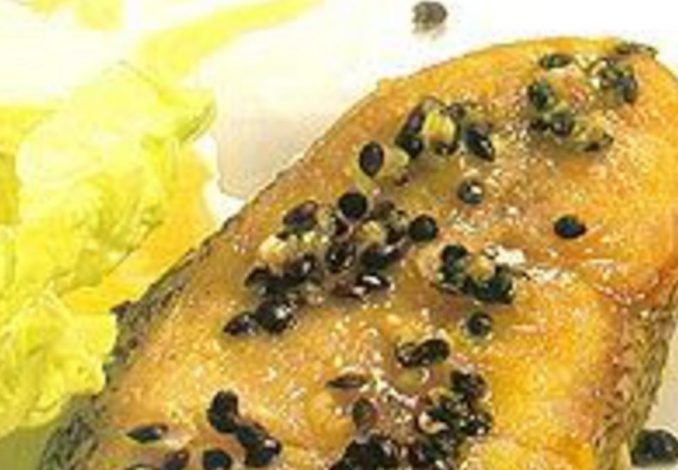 Distribua o pesto e, se preferir, regue com suco de maracujá concentrado.
