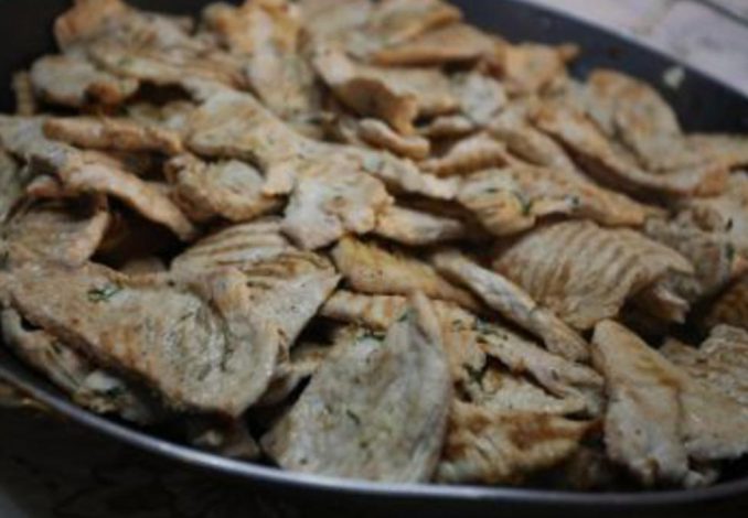 Desta vez a Maria Alice trouxe uns bifes de frango para o jantar, já temperados com sumo de limão, sal e pó de alho (uma modernice de quem já tem quase 80 e não está para descascar alhos :-) ) Queria fazê-los fritos e eu grelhados. Ganhei eu!