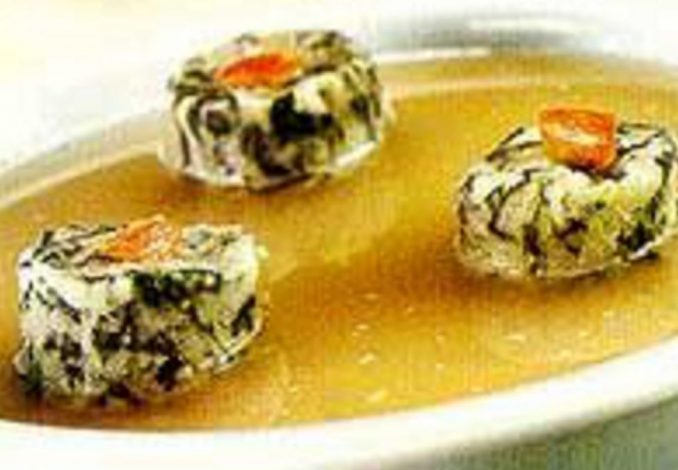 Aqueça numa panela o caldo de legumes, misture o óleo restante e a farinha de aveia. Cozinhe, sem parar de mexer, por 2 minutos. Retire do fogo, distribua nos pratos, disponha o purê e sirva. Se preferir, decore com tomate picado.