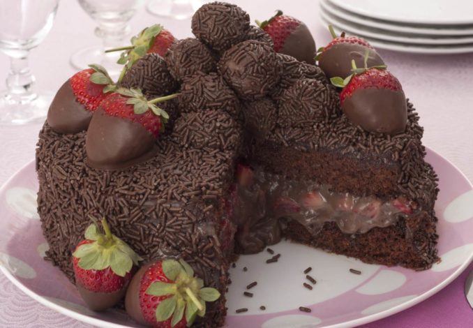Bolo de brigadeiro com morango