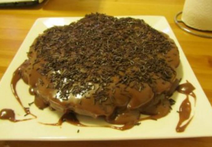 Ligue o forno e regule-o para os 200ºC. Parta o chocolate e junte-lhes a manteiga. Leve a derreter ao microondas.Entretanto misture o açúcar com os ovos e bata com a batedeira . Adicione o chocolate derretido e misture bem. Junte depois a farinha peneiradae envolva na massa sem bater. Deite a massa numa forma de mola com 22 cm de diâmetro pincelada com manteiga. Leve ao forno durante 20 minutos. Retire o bolo do forno e deixe-o arrefecer completamente dentro da forma. Entretanto prepare a cobertura de brigadeiro. Leve ao lume um tachinho com a manteiga, o leite condensado, o chocolate e as natas. Sem parar de mexer deixe cozinhar em lume brando até a mistura começar a espessar o que deve demorar cerca de 10 minutos. Retire do lume e deixe arrrefer um pouco. Coloque depois o bolo no prato de servir e cubra-o om o creme de brigadeiro espalhando e alisando a superfície. Polvilhe com as drageias de chocolate e leve ao frigorífico até servir.