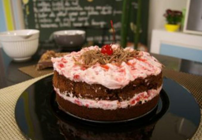 Para a montagem, disponha uma parte do bolo dentro da assadeira e regue com a calda de cereja. Coloque 2/3 do recheio, o outro disco e cubra com o restante do creme. Decore com raspas de chocolate e cerejas ao marrasquino inteiras. Deixe na geladeira e retire somente na hora de servir.