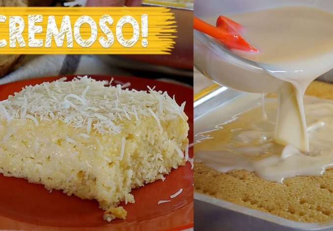 O bolo é feito com leite de coco, leite condensado, coco ralado e ovos. Ele é servido gelado e pode ser decorado com coco ralado, calda de chocolate ou frutas.
