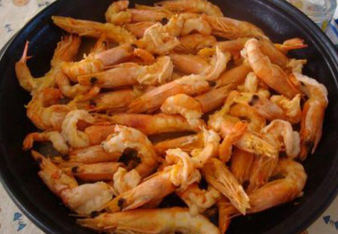 Descasque os camarões deixando intactas as cabeças. Escale-os retirando o veio escuro. Junto todos os sucos e verta por cima dos camarões numa frigideira anti-aderente. Cozinhe em lume brando e sirva com o molho.