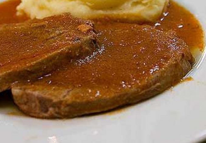 1. Tempere a carne com sal e pimenta. Derreta o toucinho numa caçarola e frite a carne até ficar dourada. 2. Espete os cravinhos na cebola, deite na caçarola e junte-lhes água. Deixe levantar fervura, tape e deixe cozer em lume brando cerca de 3 horas ou até a carne ficar tenra, voltando-a de vez em quando. Como alternativa, pode cozinhar a carne no forno regulado no 2 (150ºc). 3. Coloque a carne no prato de serviço. Deixe arrefecer ligeiramente o molho que se formar. 4. Retire a cebola e os cravinhos. Limpe o molho de toda a gordura. Junte o caldo de carne e leve novamente a levantar fervura, mexendo bem para despegar qualquer sedimento que tenha ficado agarrado ao fundo da caçarol. Passe este molho por um passador e sirva com a carne.