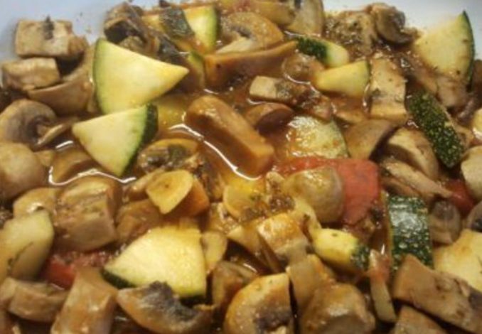 1. Coloque o azeite, os alhos e o concentrado de tomate na frigideira, deixe refogar 3 a 5 minutos 2. Junte as ervas aromáticas, os cogumelos, a courgette e o tomate partido em pedaços médios. Junte o vinho branco e deixe evaporar 3. Acrescente o sal e pimenta e deixe ficar cerca de 15 minutos Bom Apetite e Boas Experiências Culinárias :)