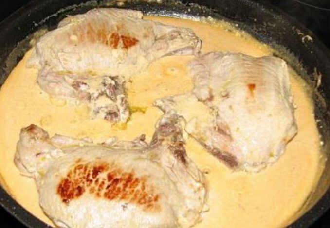 * Deitar as natas por cima das costeletas.