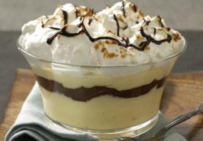 1. Misture o pudim em pó com 5 colheres de sopa de leite e 3 colheres de sopa de açúcar até ficar homogéneo. Separe o ovo da clara, coloque a clara no frigorífico. Ferva o restante leite com o leite de côco, adicione a mistura de pudim, mexa e deixe ferver por cerca de 1 minuto. Adicione a gema de ovo ao pudim e mexa. Deixe arrefecer o pudim mexendo várias vezes. 2. Torre o côco ralado até ficar douradinho. Aqueça as natas. Pique a cobertura de chocolate, adicione o chocolate às natas para derreter em lume brando mexendo sempre. Deixe arrefecer. Mexa o pudim. Distribua metade do pudim em 4 tacinhas resistentes ao calor do forno. Despeje a cobertura de chocolate (reserve alguma cobertura de chocolate) sobre o pudim e depois despeje o restante pudim sobre a cobertura de chocolate. 3. Bata a clara de ovo em castelo e vá adicionando lentamente 3-4 colheres de sopa de açúcar sem deixar de bater e envolva o côco ralado torrado com as claras em castelo. Distribua as claras decorativamente aos montinhos sobre o pudim fazendo uma touca. Torre a touca de claras levemente com um ferro ou maçarico a gás ou coloque no grill do forno. Aqueça novamente a cobertura de chocolate e decore com o mesma creme.