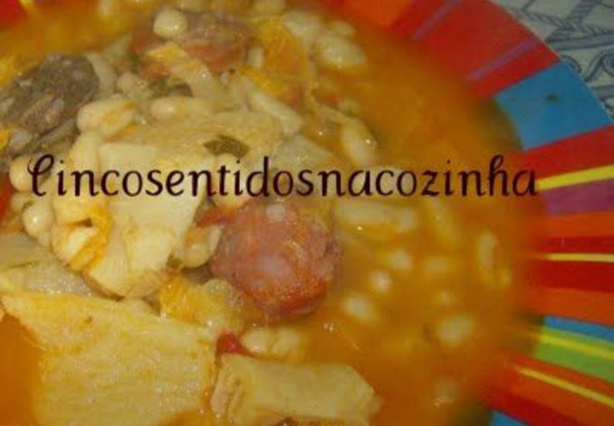 - Junte o feijão bem escorrido , as rodelas de chouriço , baixe o lume e deixe cozer.