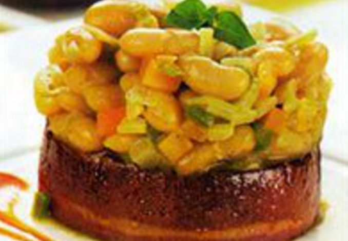 Lave a cenoura, raspe a casca, lave novamente e corte em cubos pequenos. Coloque em outra panela o azeite de oliva, a erva-doce, a cebola, o pimentão e a cenoura. Leve ao fogo e refogue, mexendo de vez em quando, por 5 minutos. Incorpore o feijão e 2 xícaras (chá) da água de cozimento do feijão. Tempere com o sal e a pimenta-do-reino e tampe a panela. Cozinhe, mexendo de vez em quando, por mais 15 minutos. Acerte o sal, retire do fogo e reserve.