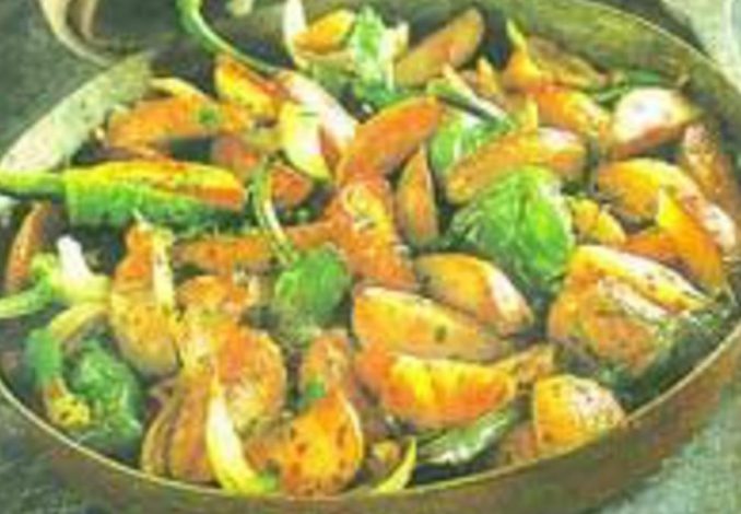 Acrescente a batata e 3 colheres (sopa) de água quente, cubra e deixe cozinhar em fogo baixo por 10 minutos, mexendo de vez em quando. Adicione a pimenta verde, aumente o fogo e regue, se necessário, com um pouco de água quente. Junte sal e a pimenta dedo-de-moça e cozinhe por mais 5 minutos, ou até que os ingredientes fiquem macios e dourados.
