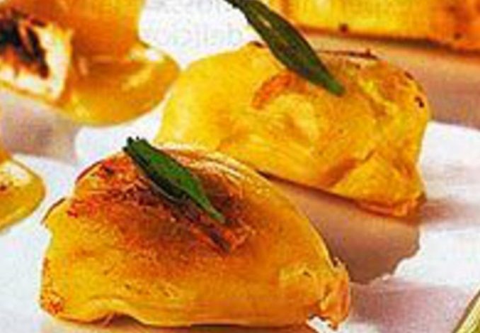 Leve ao fogo e deixe até dourar levemente e o queijo começar a derreter. Retire do fogo e sirva com a calda de menta.