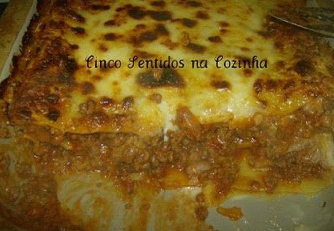 - Cubra a massa com molho de carne, coloque mais massa e novamente o molho de carne e repita a operação até acabar a massa e a carne. Termine esta composição com uma placa de massa.
