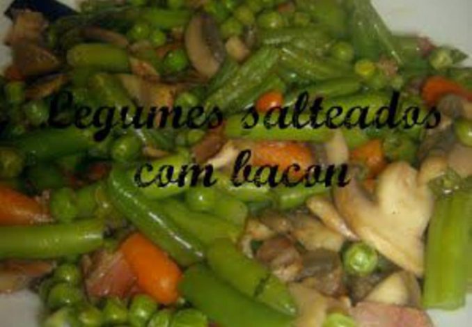 - Coza primeiro os legumes temperados de sal, mas não os deixe cozer demais. - Numa frigideira aloure o alho finamente picado, junte o bacon cortados em tirinhas pequenas, acrescente os cogumelos laminados e por fim os restantes legumes. - Salteie os legumes até ganharem cor e no final polvilhe com mangericão picado.