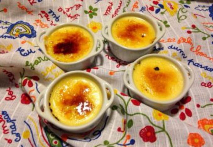 Quando frio, polvilhamos com açúcar granulado e queimamos com um ferro especial bem quente, ou com o maçarico até caramelizar.