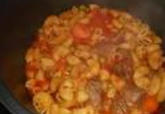 Cozem-se o chispe e a chouriça de sangue. À parte, leva-se ao lume, com o azeite, o toucinho cortado às fatias. Logo que esteja derretido, junta-se a cebola, os dentes de alho picados e o louro. Misturam-se as batatas cortadas aos bocados e deixa-se refogar. Adiciona-se água da cozedura das carnes e tempera-se com sal e pimenta. Logo que estela quase cozida mistura-se a carne cortada aos bocados, sem ossos, e a massa. deixa-se cozer. Serve-se quente.