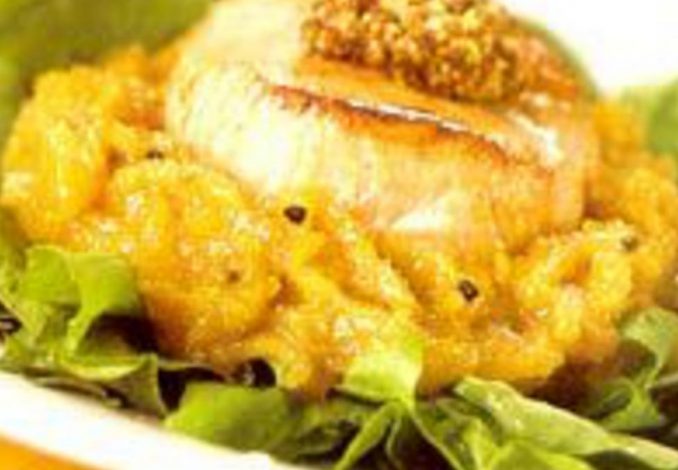 Grelhe os medalhões numa chapa de ferro com o óleo bem quente. Salpique sal, espalhe a mostarda e deixe no fogo por mais 30 segundos. Retire do fogo e sirva sobre folhas de rúcula.
