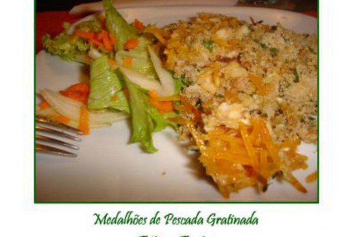 Colocar uma panela com água, sal, um fio de azeite e o caldo Knorr. Quando a água começar a ferver adicionar os medalhões de pescada e deixar cozer.