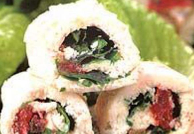 Leve os rocamboles à geladeira e deixe por 1 hora. No momento de servir, corte os rocamboles em pedaços pequenos, disponha nos pratos e sirva com a salada de folhas.