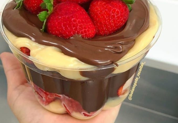 • Bata todos os ingredientes (exceto morango e Nutella) no liquidificador e leve para a panela até ferver e engrossar. ,Pique os morangos e passe em um pouco de açúcar. ,Em seguida, monte uma camada de creme e outra de morango. ,Termine decorando com Nutella.