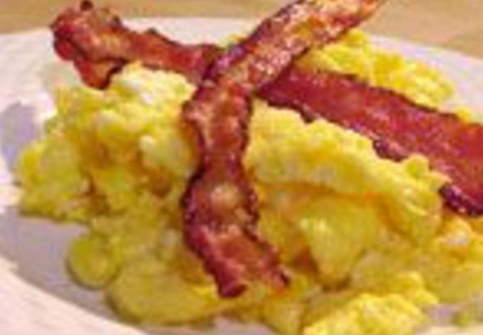 Coloque a manteiga em uma pequena panela e leve em banho-maria para derreter completamente. Em uma tigela, misture leite, ovos, sal e pimenta-do-reino. Coloque a mistura na panela com a manteiga e cozinhe em banho-maria mexendo regularmente para que os ovos fiquem no ponto.