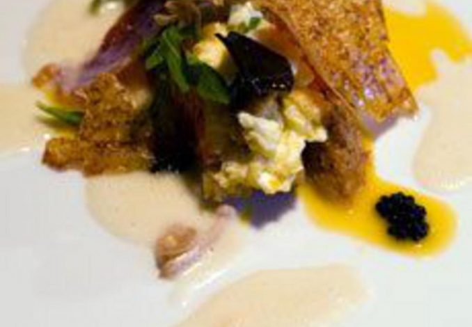 • Confecção: Coza os espargos em água abundante (só até levantar fervura). Resfrie-os em água e gelo e lamine-os. Lamine o pão e apare-o; toste numa frigideira com um pouco de azeite virgem; leve ao forno durante 5 minutos a 100 graus centígrados para terminar de tostar. Asse a alheira com um fio de azeite, retire a pele e esmague com ajuda de um garfo. Branqueie a chalota picada em azeite, introduza os espargos verdes, o presunto laminado e os cogumelos; puxe um pouco. Separe as gemas das claras. Adicione as claras aos legumes e deixe cozinhar até que fiquem brancas. Antes de retirar a frigideira do lume, junte as gemas e envolva tudo. Retire rapidamente para que as gemas não cozam na totalidade. Coloque no centro do prato duas porções de alheira de caça em forma de pastel de bacalhau, a tosta de pão por cima e depois os ovos. Guarneça com presunto crocante (core-o lentamente numa frigideira antiaderente com um pouco de azeite), caviar e folhas de rúcula selvagem. ....................... Fonte: receita e fotografia publicadas no www.expresso.pt