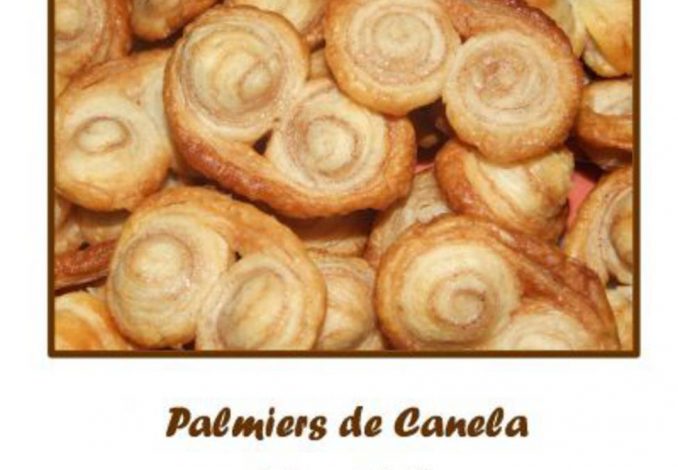 5.Forre um tabuleiro com papel vegetal, e coloque os palmiers no mesmo e leve ao forno a 200ºC. Assim que começarem a alourar pincele-os, com a água misturada com açúcar e canela, e deixe dourar mais um pouco. Quando estiverem ao seu gosto, vire os palmiers e repita o procedimento.