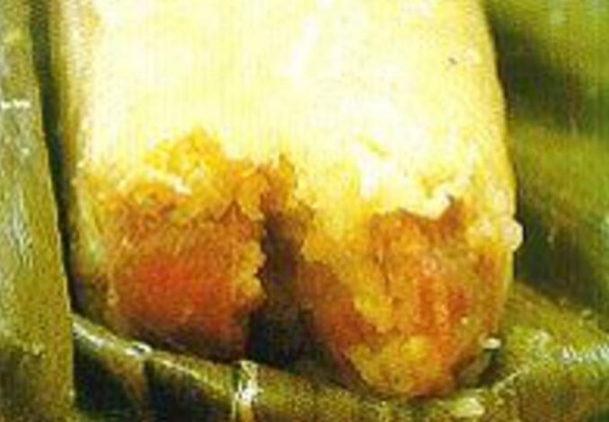 Escalde as folhas de bananeira em água quente, faça canudos e amarre um dos lados com barbante de cozinha. Encha com a massa e distribua a linguiça. Feche o outro lado com barbante, coloque na panela com água fervente e cozinhe por 45 minutos, ou até a pamonha ficar cozida e levemente cremosa.