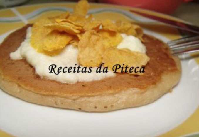 Sirva as panquecas com o molho, polvilhadas com cereais ou com canela em pó: