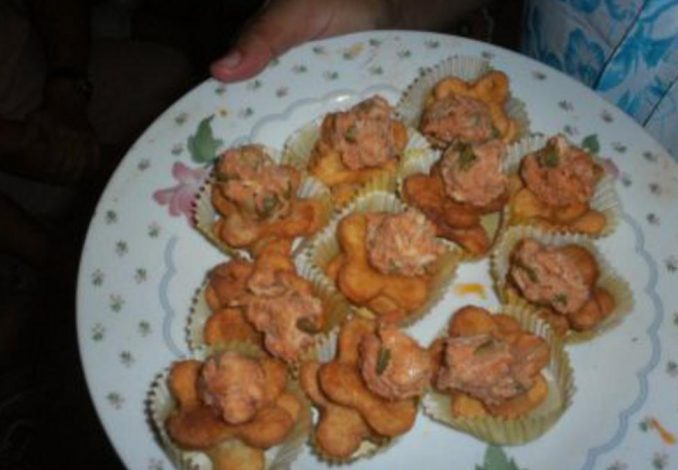 Coloque em um recipiete todos os ingredientes e mexa bem. Sove a massa com as mãos até ficar homogênea.Polvilhe farinha sobre a mesa e abra a massa com o rolo até atingir 3 mm de espessura.Corte-as com cortadores em formato de flor,utilizei aqueles cortadores em metal.Umedeça o centro da flor com água.Coloque uma flor sobre a outra ,alternando as petálas.Aperte o centro com o dedo.Leve para fritar em óleo quente.Coloquei de 5 em cinco,par ao óleo não esfriar e não encharcar os pastéizinhos.Escorra em papel absorvente.Reserve.