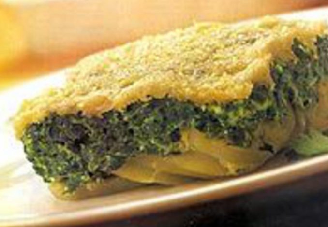 Lave as batatas e leve ao fogo numa panela com 1 litro de água e 2 colheres (chá) de sal. Cozinhe por 30 minutos, ou até ficarem macias. Retire do fogo, escorra a água, descasque as batatas e pique-as em rodelas de 1 cm. Tempere com sal, pimenta-do-reino e 2 colheres (sopa) de azeite de oliva. Misture com cuidado e reserve. Ligue o forno à temperatura média. Limpe e lave o espinafre, separe as folhas e os talos mais macios e coloque numa panela. Regue com 4 colheres (sopa) de água, tampe a panela e leve ao fogo baixo por 5 minutos, ou até ficar macio. Retire do fogo, esprema bem o espinafre, extraindo o máximo de líquido. Pique-o finamente, coloque numa tigela e reserve. Em outra tigela, coloque 2 ovos, o leite, a farinha, 2 colheres (sopa) de azeite e o sal. Bata com um batedor manual por 1 minuto, ou até ficar homogêneo. Junte essa mistura ao espinafre e mexa bem. Com o azeite de oliva restante, unte uma assadeira refratária de 20 cm x 20 cm. Coloque as batatas e o creme de espinafre. Reserve. Separe as claras das gemas dos ovos restantes e bata-as na batedeira por 2 minutos, ou até obter picos firmes. Sem parar de bater, junte as gemas e o sal e bata por mais 2 minutos. Espalhe sobre o creme de espinafre e distribua o queijo. Leve ao forno por 25 minutos, ou até dourar a superfície. Retire do forno e sirva. Foto da Revista Água na Boca.