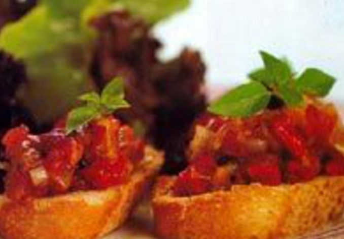 Numa panela, refogue a cebola no óleo. Incorpore os pimentões, os tomates, o sal e a pimenta-do-reino. Cozinhe em fogo baixo por 10 minutos. No final do cozimento, misture o manjericão (rasgue as folhas com as mãos).