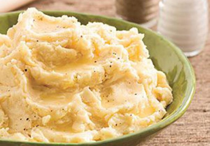 Passe as batatas pelo espremedor de batatas ou amasse com garfo e volte a panela ao fogo.