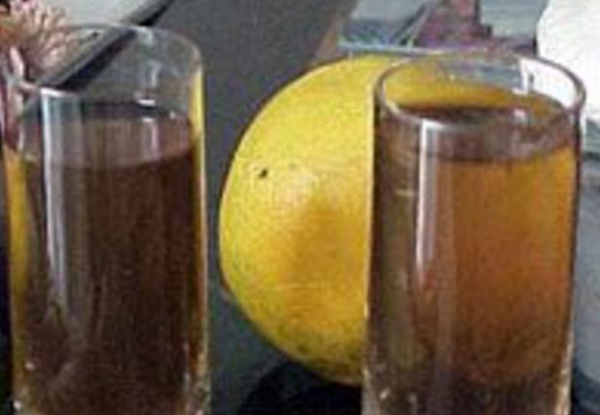 Coloque o açúcar em uma panela funda (2 litros de capacidade). Leve ao fogo e caramelize levemente. Com cuidado, acrescente a água fervente, os cravos-da-índia, gengibre, canela, fatias de limão e casca da laranja.