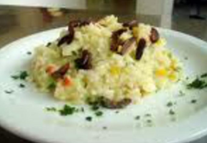 Aqueça o caldo. Em uma outra panela aqueça o azeite. Adicione a cebola e o alho e refogue. A partir daí a receita pede a sua atenção total e você não deve se afastar da panela. Aumente o fogo e adicione o arroz e comece a fritá-lo. Mexa ele constantemente de forma a não queimá-lo, ele não deve ficar dourado. Depois de 2 ou 3 minutos diminua o fogo para médio e adicione o vinho branco sem parar de mexer. Ele vai chiar e deve misturar todos os ingredientes da panela, nesta etapa todo o álcool da bebida vai evaporar e nós vamos para a segunda etapa. Assim que o vinho for absorvido pelo arroz, acrescente a primeira concha de caldo quente. Você agora não deve parar de mexer, não se esqueça de esfregar o fundo da panela deixando o fundo bem limpo para que o arroz não grude. Vá acrescentando mais caldo a medida que ele for evaporando, tome cuidado para que ele não fique com muito caldo e fique empapado demais. Essa etapa deve demorar uns 15 minutos. Experimente o arroz até que ele esteja no ponto. Deve ficar al dente, levemente húmido, mas sem caldo. Acrescente as lascas de bacalhau, a azeitona e o tomante, antes de terminar de acrescentar o caldo. Quando o arroz estiver o ponto, abaixe o fogo e adicione a manteiga no centro da panela. Misture delicadamente, sem encostar a colher na manteiga, ou seja, misture na lateral da panela, de forma que manteiga fique no meio e vá se desfazendo aos pontos. Ajudará a dar brilho no seu risoto. Desligue o fogo e acrescente o queijo parmesão. Depois de tudo isso, experimente, se estiver faltando sal, salpique um pouco, misture, passe para uma travessa bonita e sirva imediatamente. BOM APETITE!