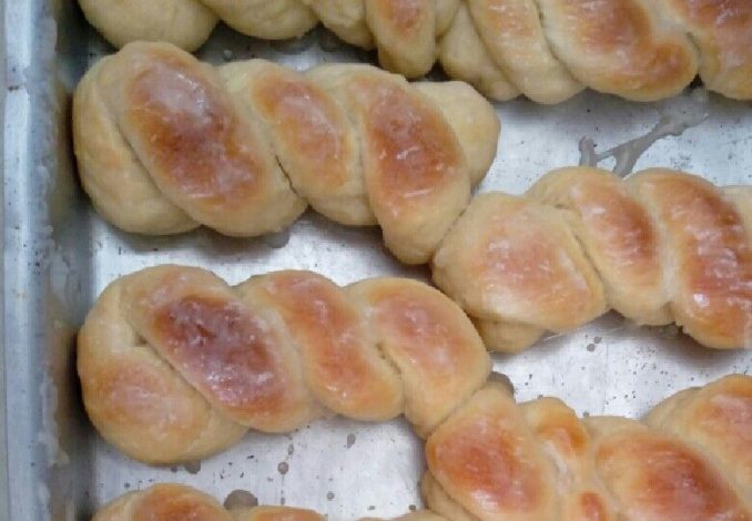 • Fermento ativado: Dissolve o fermento na água morna e deixa descansar uns 10 minutinhos até espumar. ,Misturando: Enquanto isso, põe a farinha, o sal e o óleo numa bacia grande e faz um buraco no meio. Aí despeja o fermento ativado e o leite condensado. Ah, e não esquece dos ovos. ,Amassar é preciso: Mistura tudo muito bem, até formar uma massa que não gruda nas mãos. Se grudar, adiciona mais um tiquinho de farinha. ,Descansar pra crescer: Tapa com um pano de prato e deixa crescer por uma hora ou até dobrar de tamanho. ,Modelando: Agora que a massa cresceu, divide em partes e faz os cordões pra trançar. Arruma na forma e deixa descansar mais uns 20 minutinhos. ,Toque final: Pincela com o ovo batido pra ficar douradinho. ,Forno à lenha ou tradicional: Se for no forno à lenha, já deixa ele bem quentinho, tá? Vai levar uns 20 minutinhos pra assar. No forno tradicional, pré-aquece a 180ºC e deixa por uns 25-30 minutos.