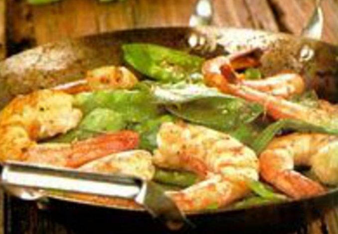 Em seguida, acrescente os camarões, o alho desidratado, o molho de pimenta e misture bem. Acerte o sal, retire do fogo e sirva em seguida.
