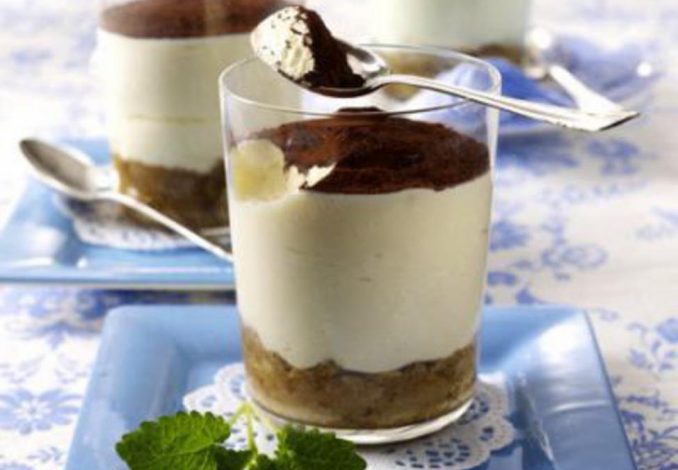 Esmague os palitos la reine e distribua em 4 copos de sobremesa. Regue cada copo com 2 colheres de sopa de café e pressione os pedaços de palitos la reine no fundo do copo. De seguida, regue os biscoitos com o licor de amêndoa e leve ao frio. Separe os ovos. Bata cremosamente as gemas com 25g de açúcar até ficar meio esbranquiçado, adicione o mascarpone e mexa. Bata as claras em castelo e vá adicionando pouco a pouco 25g de açúcar. Envolva as claras cuidadosamente com o creme de mascarpone e despeje o mesmo nos copos. Polvilhe abundantemente com cacau em pó e decore com a erva cidreira.