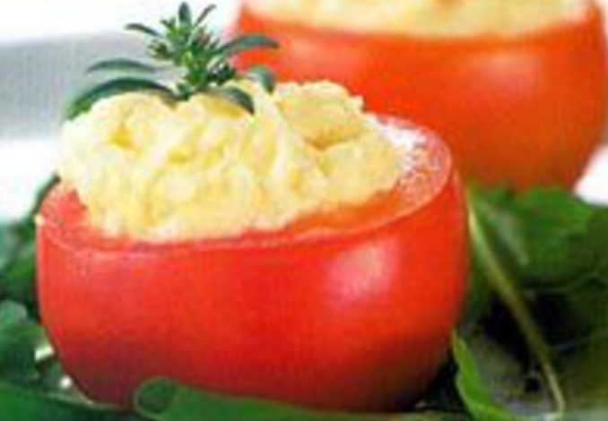Lave os tomates, faça uma tampa na parte superior e elimine as sementes. Distribua dentro as folhas de manjericão e recheie com as batatas.
